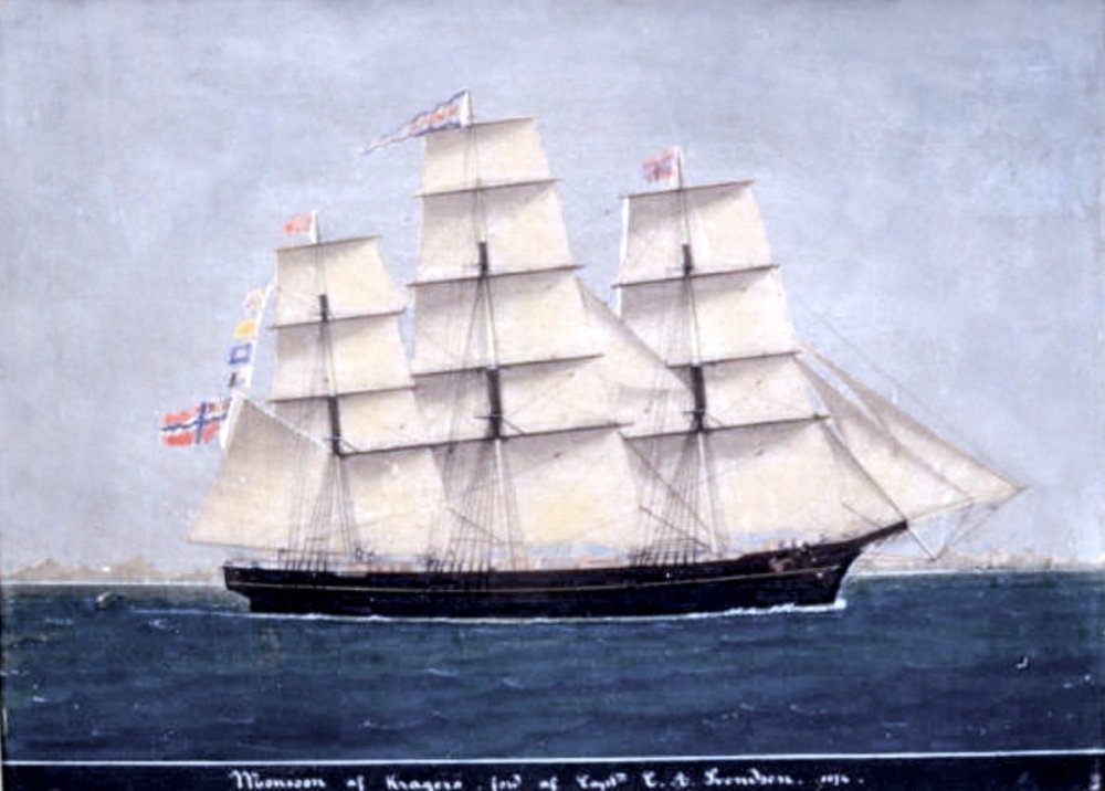 Here is a painting of the Monsoon of Kragerø and some more information about the ship https://www.norwayheritage.com/p_ship.asp?sh=monso -
