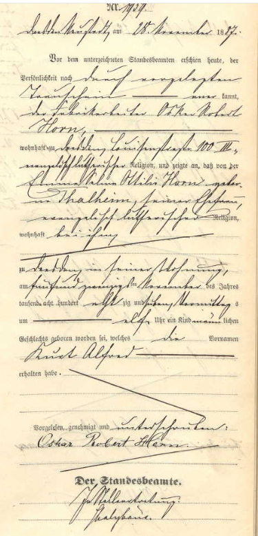 Litt om Kurt Horn: Musikselskabet Harmonien 1765-1945. B. 2 Fødsel Dresden: Dresden, Germany, Births, 1876-1907 - Ancestry.com Name Kurt Alfred Horn Gender männlich (Male) Birth Date 25 Nov 1887 Birth Place Dresden, Saxony, Deutschland (Germany) Civil Registration Office Dresden Iii Father Oskar Robert Horn Mother Emma Selma Ottilie Horn Certificate Number 1959 Notes Oskar Robert, Emma Selma Ottilie Reference Type 22 Sequence Number 26 - Today