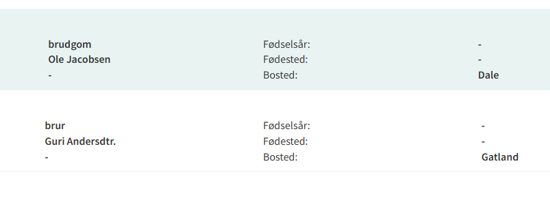 Ole Jacobsen fra Dale som gifter seg med Guri Andersdtr. Gatland, er han fra Meland? Eller en annen Dale? Jeg er litt usikker på hvem du leter etter? -