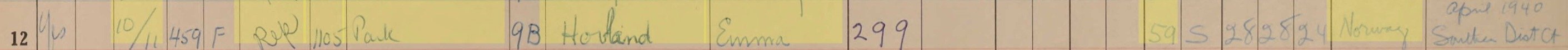 Registrert på samme sted i 1956 i The Manhattan, New York, New York, U.S., Voter Registers, 1915-1956 Name Emma Hovland House Number 1105 Name of Street or Post Office Address Park Registration Age 59 Gender Female Birth Date abt 1897[abt 1897] Birth Place Norway Occupation Dr. Malatire Naturalization Date Apr 1940 Registration Date 11 Oct 1956 Registration Place New York, USA Party Affiliation Republican Electoral District ED 064 Assembly District AD 09 -