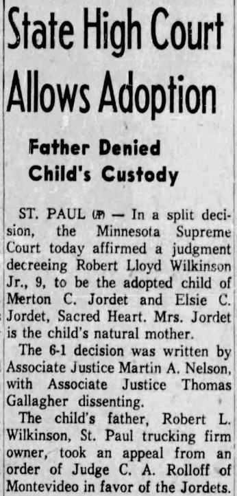 Web: Minnesota, U.S., Marriages from the Minnesota Official Marriage System, 1850-2022 - Ancestry.com Detail Source Name Elsie Carolyn Wilkinson Marriage Date 25 Jul 1953 Marriage Place Renville, Minnesota, USA Spouse Merton Clifford Jordet Certificate Number U 620 URL https://moms.mn.gov/