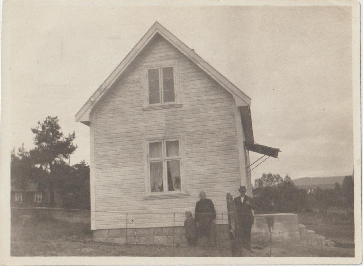 Jeg forsøker identifisere gamle familiebilder som er helt umerkede. Et av bildene har et hus jeg synes det er noe "fremmed" ved. Er det noen som kan si noe om denne hustypen (eller noe annet i bildet). Jeg ser det er lagt inn strøm. Vigdis