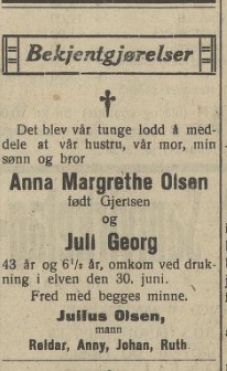 Søstrene Anny Olsen f. 18.04.1916 og Ruth Olsen f. 19.04.1920. Barn av Julius Georg Norman Olsen f. 30.09.1892 i Lenvik og Anne Margrethe Kristine Gjertsen f. 04.03.1888 i Lebesby. Den informasjonen jeg har om søstrene er FT Lebesby 1920: Anny Olsen: https://www.digitalarkivet.no/fs10151708896423 Ruth Olsen: https://www.digitalarkivet.no/fs10151708896421 Etter dette har jeg ikke klart å finne informasjon om søstrene og står helt fast. Jeg setter stor pris på bistand for å finne ut hvordan det gikk med dem videre i livet. -