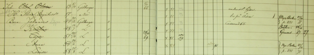 Dåp https://www.digitalarkivet.no/view/255/pd00000040536971 Lars Lie/Karen Thalette Lie ?-1851 1865 til sjøs? 1868 Viet: https://www.digitalarkivet.no/view/327/pv00000006843780 Styrmann, Sikke Tønnesd. 1844 1875 https://www.digitalarkivet.no/census/person/pf01052233000717 Materialforvalter ved Jæder Jernbaneanlægget (Hjemme fra sjøen 1874-1879.) 1881 Sikke død: https://www.digitalarkivet.no/view/267/pg00000004924964 1891 Viet: https://www.digitalarkivet.no/view/327/pv00000010844980 Helga Kittelsd 1858, han magasinassistent. 1902 Helga død: https://www.digitalarkivet.no/view/267/pg00000007735437 1908 Viet: https://www.digitalarkivet.no/view/327/pv00000008172124 Anna Elisabet Torsdr. 1858 Ytreland Kopervik, han fabrikkarb. 3dje vielse 1924 Død: https://www.digitalarkivet.no/view/267/pg00000000230625 26/4-1879 Cupido JA i Stavanger til Amerka - av 16/10-1879 i London (stuert) 11/3-1886 G.(ustav) Nermann JA i Hsund til England - av 9/4-1886 i Stavanger (matros) 28/3-1893 Bayard JA i Langesund til England - av 26/5-1893 i Holmestrand (stuert) 16/6-1893 Fidelia i Porsgrund til Newcastle - av 24/7-1893 i Skien (styrmand)