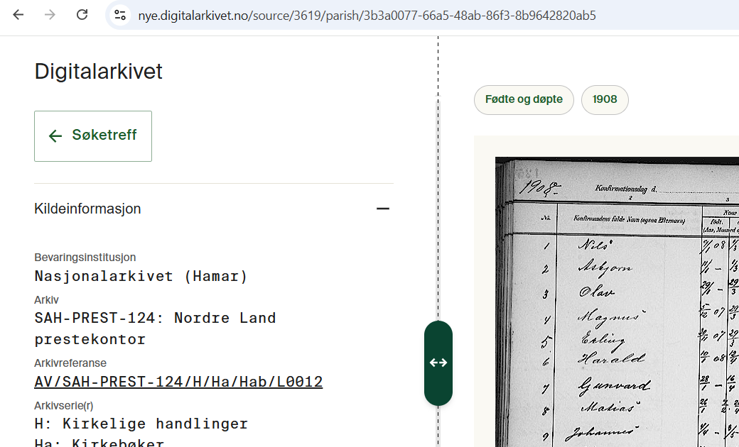 Innledning I midten av desember lanserte Nasjonalarkivet (da: Arkivverket) en ny tjeneste i Digitalarkivet for søk etter og visning av skanna kirkebøker. Tjenesten finnes her (https://nye.digitalarkivet.no/search/parish). Nasjonalarkivet mottok mange tilbakemeldinger via Facebook, en tilbakemeldingsfunksjon i tjenesten og en diskusjonstråd her i forumet: Da vi lanserte tjenesten, var den fremdeles under utvikling. Vi har fått svært mye konstruktiv kritikk, noe vi setter stor pris på. Mye av kritikken sammenfalt med interne vurderinger, og tjenesten er blitt videreutviklet siden lanseringen. Her følger informasjon om hva som har skjedd siden sist, og hva som skal skje videre. Hva skal den nye tjenesten erstatte? Det var enkelte misforståelser omkring hva den nye tjenesten erstatter, og vi skal derfor først presisere dette. Den nye tjenesten består av: Søk og treff: https://nye.digitalarkivet.no/search/parish Innholdsside for hver enkelt kirkebok: https://nye.digitalarkivet.no/source/5940/parish/e40d0e6d-ebc4-44ad-b76b-da1d04223113?view=index Bildevisning med fokus på kildeinformasjon: https://nye.digitalarkivet.no/source/5940/parish/e40d0e6d-ebc4-44ad-b76b-da1d04223113 Bildevisning med fokus på selve bildet: https://nye.digitalarkivet.no/source/5940/parish/e40d0e6d-ebc4-44ad-b76b-da1d04223113?mode=focus Denne tjenesten skal erstatte følgende: Søk og treff: https://media.digitalarkivet.no/kb/browse Innholdsside for hver enkelt kirkebok: https://media.digitalarkivet.no/kb/contents/5940 Bildevisning: https://media.digitalarkivet.no/view/5940/5 Det er antakelig mange brukere som ikke har benyttet de nåværende søk- og treff-funksjonene, men som i stedet er vant til å bruke «Finn kilde» (https://www.digitalarkivet.no/search/sources) for å søke etter skanna kirkebøker. Vi vil understreke at «Finn kilde» ikke vil bli berørt på annen måte, enn at «Finn kilde» vil lenke til den nye tjenesten for skanna kirkebøker, i stedet for til den gamle. Hvorfor ny tjeneste? Flere stilte spørsmål om hvorfor Nasjonalarkivet endrer en tjeneste som allerede fungerer bra. Vi har hatt inntrykk av at brukerne har blitt godt fortrolige med den nåværende tjenesten, etter at den i 2015 erstattet den opprinnelige tjenesten fra 2005. Internt i Nasjonalarkivet har vi også vært godt fornøyde med tjenesten. Det er likevel slik at Digitalarkivet er i kontinuerlig utvikling. Siden 2015 er det utviklet en rekke nye tjenester, og flere er under planlegging. Alt dette skal sys sammen til et helhetlig Digitalarkivet, og da er det nødvendig å bygge opp Digitalarkivet på nytt med en ny database som ivaretar alle de nye behovene. Den databasen som har vært i bruk siden 2010, og som skanna kirkebøker og annet skanna arkivmateriale ble en del av i 2015, skal fases ut. Digitalarkivets bildesøk (https://nye.digitalarkivet.no/search/photo) og dokumentsøk (https://nye.digitalarkivet.no/search/transcription) baserer seg allerede på den nye databasen, og nå kommer de skanna kirkebøkene etter. En viktig årsak til at de skanna kirkebøkene ble valgt ut for overføring til den nye databasen, er at Nasjonalarkivet aldri har hatt verktøy for «indeksering» (påføring av metadata som listetype, år og sidetall) og vedlikehold av kirkebøkene som har «snakket» direkte med databasen fra 2010/2015. Våre verktøy har «snakket» med databasen fra 2005, noe som har gjort det unødvendig komplisert å indeksere og vedlikeholde kirkebøkene, fordi vi hele tida har vært nødt til å overføre data mellom databasene. Nå har vi utviklet et nytt verktøy som «snakker» direkte med den nye databasen, og da må også Digitalarkivets tjeneste for skanna kirkebøker forholde seg til den nye databasen. Hva er nytt siden desember? Siden desember har det blitt utført større og mindre endringer i tjenesten. Hovedinnsatsen har vært rettet mot bildevisninga, hvor fullskjermvisninga har blitt videreutviklet til det som ovenfor er kalt «bildevisning med fokus på selve bildet»: https://nye.digitalarkivet.no/source/5940/parish/e40d0e6d-ebc4-44ad-b76b-da1d04223113?mode=focus En helt ny funksjon i bildevisninga er ei visning av transkripsjoner som er koblet til bildet. I desember ble mange bildefiler vist i versjoner som ikke var skjerpede eller kontrastjusterte. Dette er nå rettet opp. I tillegg er det gjort mange mindre endringer og justeringer. I søkeskjemaet er f.eks. feltene «Prestegjeld» og «Sokn» flyttet opp til feltet «Geografi», slik at man enklere ser hvilke alternativer man har med hensyn til geografisøk. Permanente nettadresser I tjenesten som har vært i drift siden 2015, heter de permanente nettadressene «brukslenke for sidevisning». De finnes i noen forskjellige, likeverdige varianter: https://www.digitalarkivet.no/kb20061107330087 https://media.digitalarkivet.no/kb20061107330087 https://digitalarkivet.no/kb20061107330087 Alle disse vil fungere og omdirigere til den nye tjenesten. I den nye tjenesten vil imidlertid «brukslenke for sidevisning» se litt annerledes ut: https://goto.digitalarkivet.no/kb20061107330087 Nettadresser på formen https://media.digitalarkivet.no/view/5940/5 har ikke vært permanente, fordi de ikke viser til ei bestemt bildefil, men til en bestemt posisjon i indekseringstabellene. Hvilken bildefil som innehar en bestemt posisjon, kan endre seg over tid. Det er likevel laget en midlertidig omdirigering som sørger for omdirigering til den nye tjenesten, basert på hvilke bildefiler som innehar hvilke posisjoner pr. i dag. Nettadresser til innholdssider, søk og treff i tjenesten som har vært i drift siden 2015, vil ikke omdirigere til den nye tjenesten. Funksjonalitet som pr. nå ikke er med i den nye tjenesten Den nye tjenesten har pr. nå ingen utskriftsfunksjon eller mulighet for å lage PDF-hefter. Man kan derimot laste ned enkeltbildefiler. Videre finnes den nye tjenesten ikke i engelskspråklig versjon. Hva vil skje videre? Allerede i dag iverksetter vi o