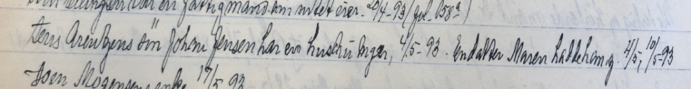 1. I Johan Ernst Brodahls notater i SAT står det: Jens Arentsen søn Johan Jensen har en hustru Inger, 4/5-93. En datter Maren hadde han g.(?) 4/5, 10/5-93 Er det noen som kan hjelpe meg å finne kildene Brodahl hadde på det? PS: Johan Jensen var Trondheimsborger og nordlandshandler på Forneset/Furuneset på Helgeland. PPS: bøkene til Brodahl ga ikke noe hint om hvor han hadde samlet disse opplysingene fra.