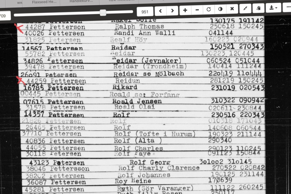 1. Mine foreldre var flyktninger fra februar 1945, først ved Kjesäter, og senere ved Berga. Jeg har funnet dem i arkivet med nummer, navn og fødselsdato (se vedlegg). Ytterligere opplysninger ser ut til å være sperret i 80 år (dvs. til 2025). Er det noen mulighet for å få innsyn i dokumenter om mine avdøde foreldre, eller må jeg vente til 2025. Formålet er rent privat slektsgransking.