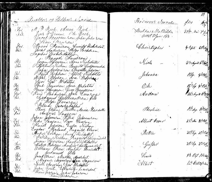 Ein 85 år gamal kjenning av meg i Florida kom i dag med ei spennande oppdaging! Han har i mange år vore på leiting etter opplysningar om bestemori Theoline Olson Norris, fødd i Minnesota i august 1868: https://www.familysearch.org/ark:/61903/3:1:S3HT-68DP-4X?i=34&cc=1325221 Dødsattesten hennar frå Alameda Co., CA syner at ho var fødd 18.8.1869: Name Theoline Norris Event Type Death Event Date 18 Sep 1953 Event Place Alameda, California, United States Birth Date 18 Aug 1869 Birthplace Minnesota Gender Female Father's Name Olson Dødsattesten oppgjev foreldri til å vera Gustav og Mathilde Olson, men dette vart i 1953 visstnok oppgjeve av ein son, og eit slikt par finst ikkje i det området der Theoline var fødd! Kjenningen min er ganske so sikker på at det må vera denne jenta: Theoline, fødd 18.8.1868 og døypt i Little Iowa, Winneshiek Co., IA 16.10.1868 Foreldri er, som det går fram av originalen, Thore Olson og Bertha Marie Pedersdotter! Denne kyrkja ligg ikkje langt ifrå Houston og Fillmore Cos., MN, og Theoline kan godt vera fødd der!! Etter tradisjonen skal båe foreldri vera avlidne kort etter Theoline var fødd, og Theoline laut ut for å tena hjå andre! Kven var so desse foreldri? FamilySearch nemner denne vigsli i Nannestad 11.3.1855, og namni stemmer jo «på ein prikk», Thore Olson og Bertha Marie Pedersdotter: https://media.digitalarkivet.no/view/530/147 men eg har vanskar med å tyda skrifti og gardsnamni til dette parfolket! Finst det kan henda ei bygdebok for Nannestad eller nokon med lokal kunnskap som eventuelt kan stadfesta, eller avkrefta, at dette kan vera foreldri til Theoline? Eg takkar so mykje på førehand for alle gode tips!