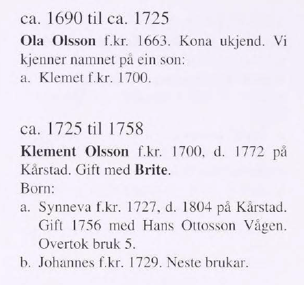 Ole Jensson var bonde på dette bruket 1708-1741. Han fylgde