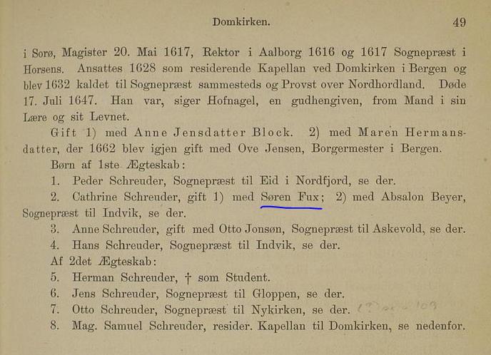 1 datter Anna Høyer 30 år, tjener prosten Finde i Eivindvig. Hun må være den Maren Andersdatter som ble begravet 16. mar i Domkiken i Bergen under stolene ved den nye gang. https://www.digitalarkivet.no/kb20070306660242