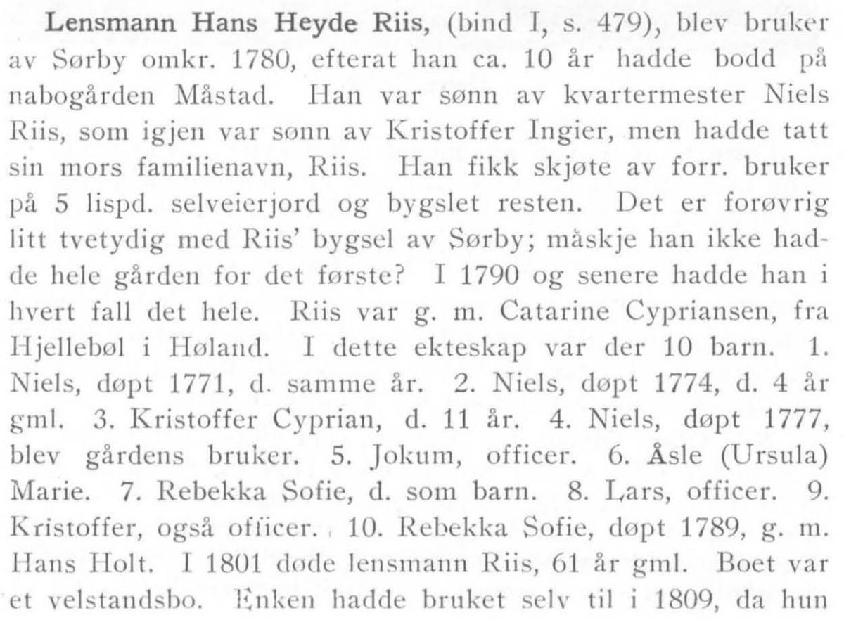 kmg Skrevet Oktober 9, 2014 Del Skrevet Oktober 9, 2014 Takk til Berit og Magne. Noko usikker på kven som er den rette. Den Christopher eg søker bodde i følge Ovenstad: i Odalen 1834-37, Fredrikstad i 1845. fekk avskjed 29/6 1848. Christopher Riis 10 år er Boye Christopher Riis født 16.08.1790 i Christiania og senere assessor i Bergen Stiftsrett, død der 14.07.1851. Lenke til kommentar Del på andre sider More sharing options...