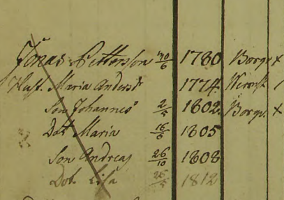 Jonas Petterson f 30,6,1780 og Maria Andersson f 1774, G. 16,6,1799 i Borgvik, Värmland, Sverige