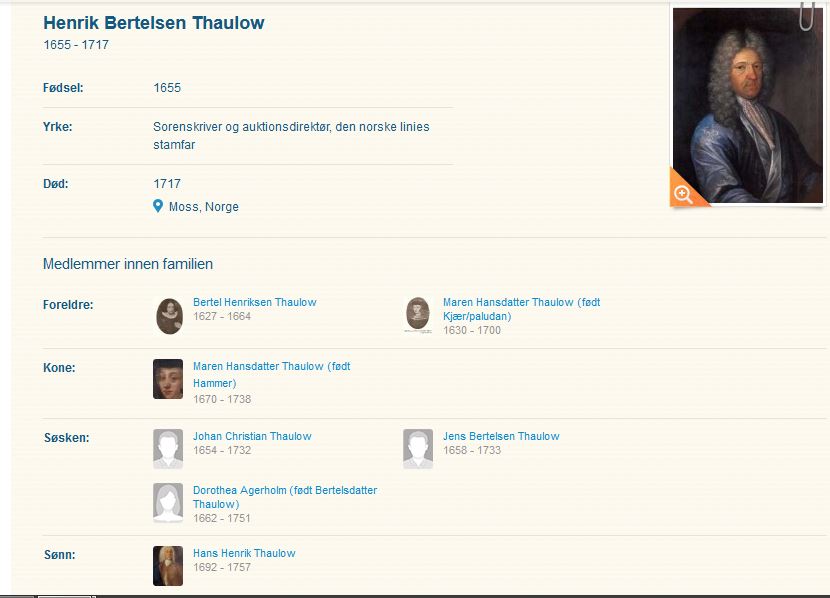Hvem var Henrik Berthelsen Thaulow 1655-1717 gift med? Dokumentasjon på hans død. Hva med hans aner?
