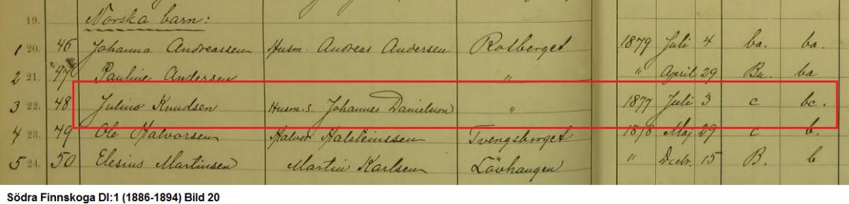 Julius Johannessen f 03.07.1877, boende i Hof, Hedmark