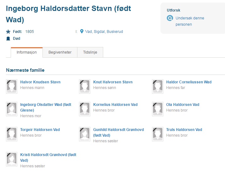 Ingeborg Haldorsdtr. på Stavn , Nes i Buskerud, hvor var hun født og hvem var foreldrene hennes.
