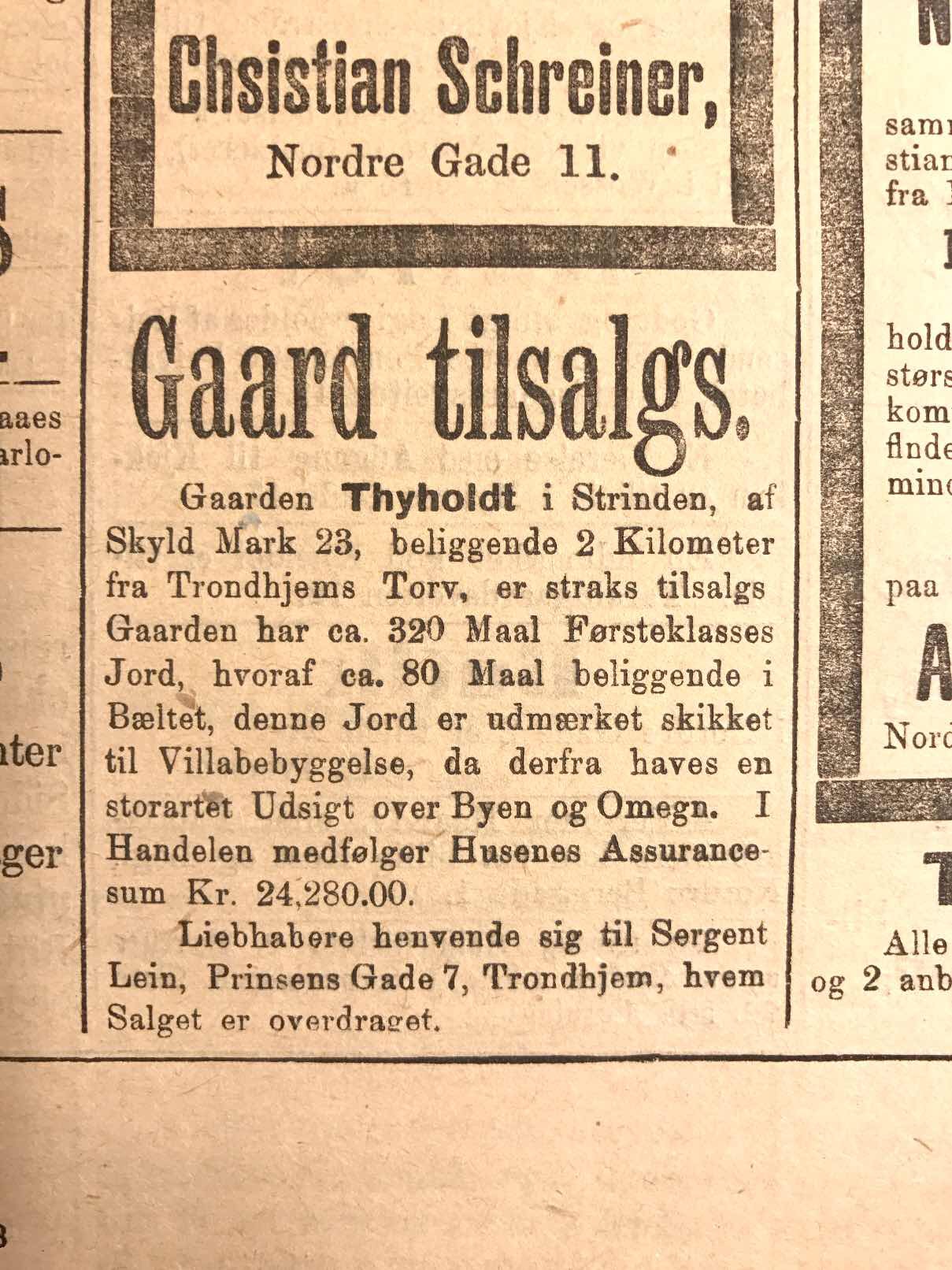 Tyholt gård selges og assuransesum er inkludert