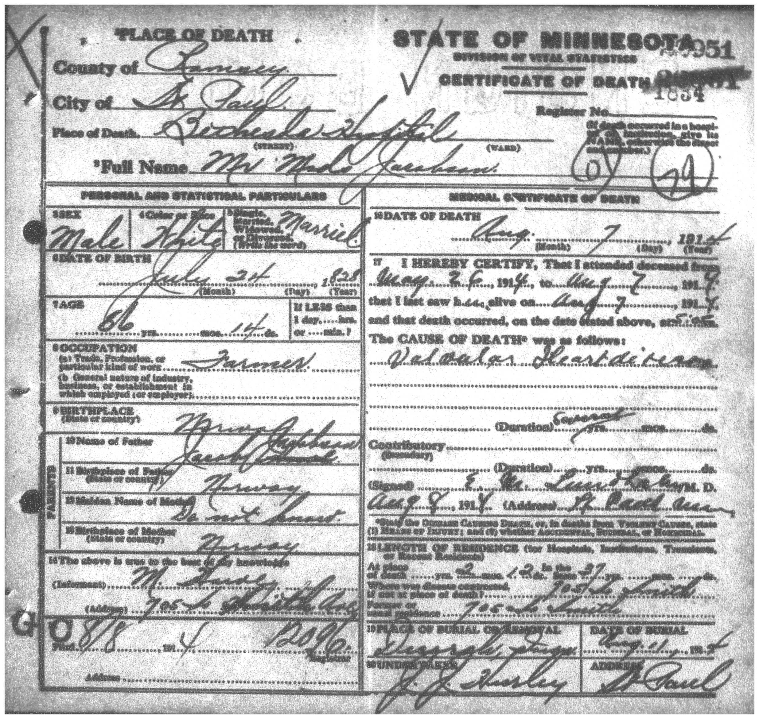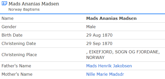 Mads Jacobson Hove - fødd i Eikefjorden, Kinn 29.8.1870 - utvandra i 1878 til Iowa - opphavet hans og til foreldri hans?