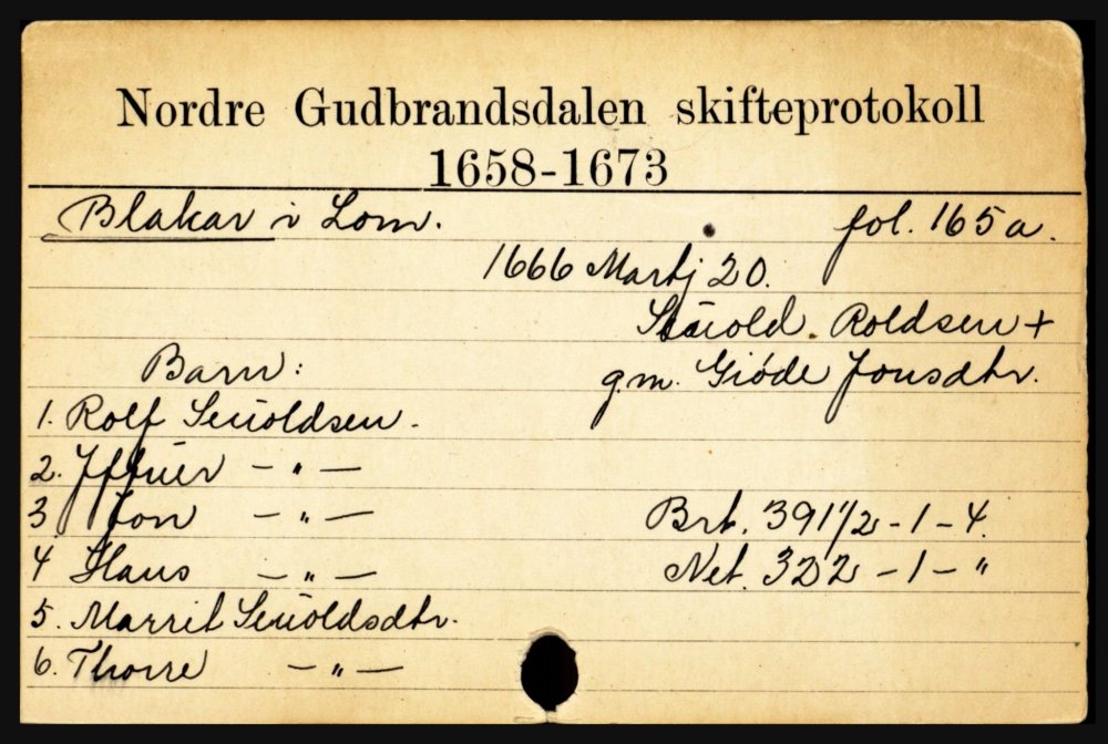 Rolv Mikkelson Blakar født omkring 1565 gift med Tor Oldsatter Prestegård. De hadde sønnene Sevald og Jon.