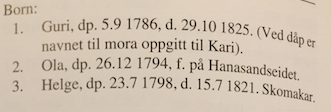 ##### (foreldri hennar? – dødsattesten hennar seier faren var Ole Helgeson!)