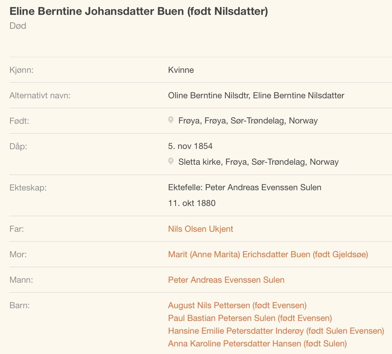 Men hun står feilaktig som født 13/3-1849 (tydet jeg riktig?) på Nord-Frøya.Døde på Sula.