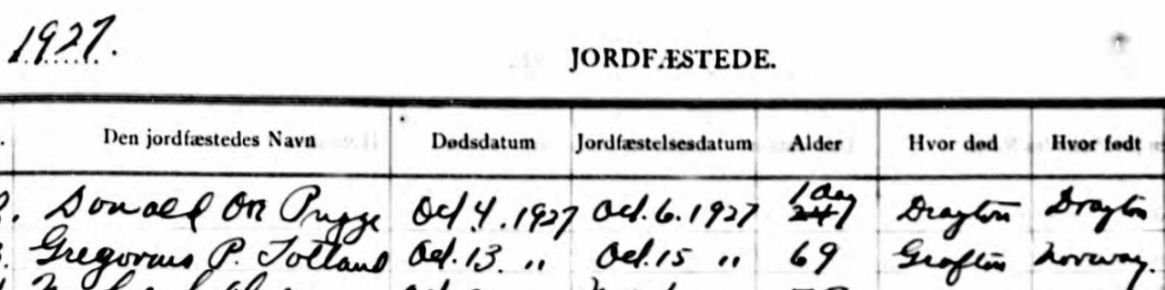 Gregorius Pedersen Totland f. 1859 i Davik, busett Teien, Kittson Co. Minnesota - når død?