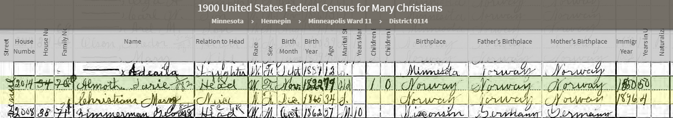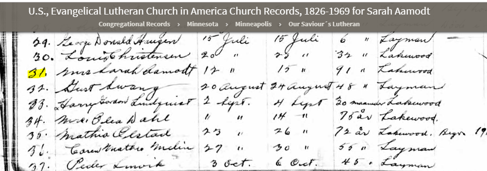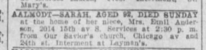 USA, MI, Minneapolis: NIls Christian Mikaelson Aamodt si kone Sara. Er det mulig å finne opplysningar om henne?,