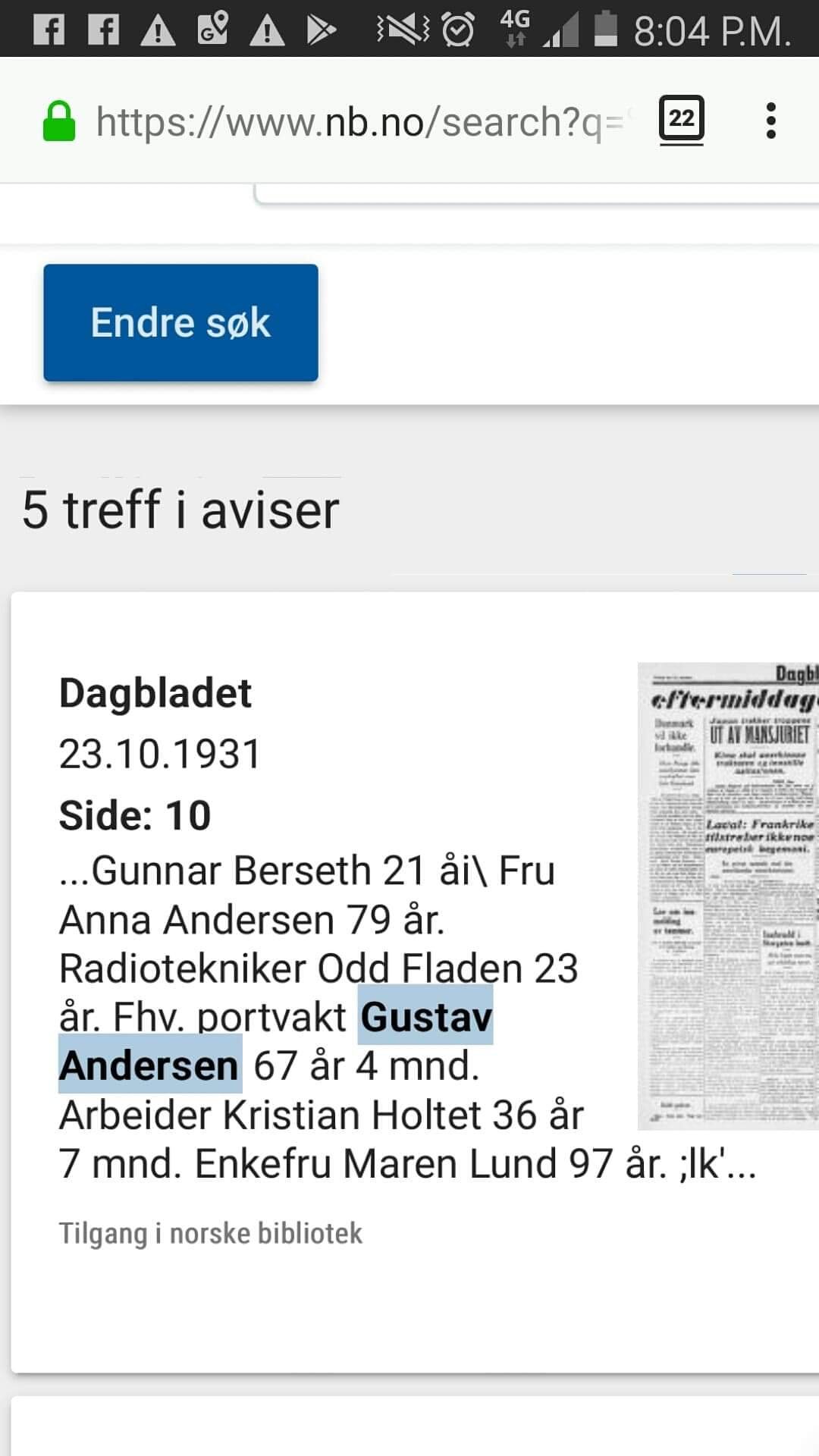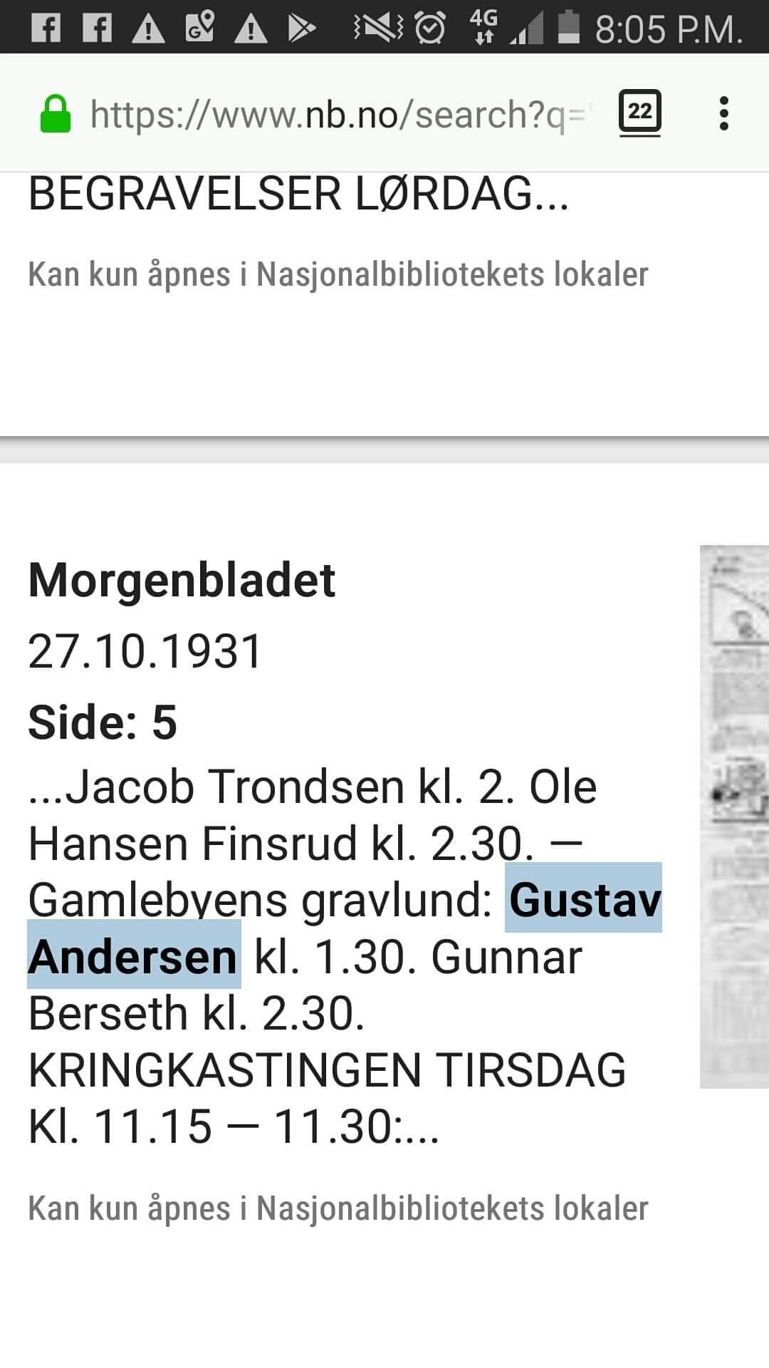Hei! Min tippoldefar het Gustav Andersen, født 15. juni 1864. Jeg, bestefar og resten av familien vet veldig lite om han, all informasjon blir satt veldig stor pris på 🙂