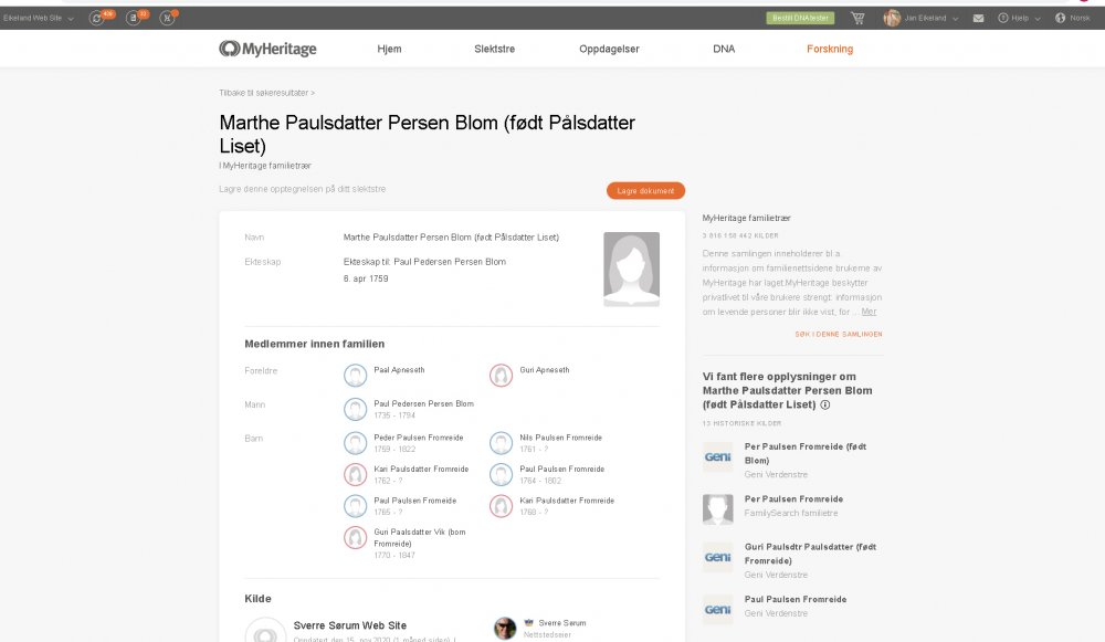 Foreldrene til Marthe Paulsdatter Liseth