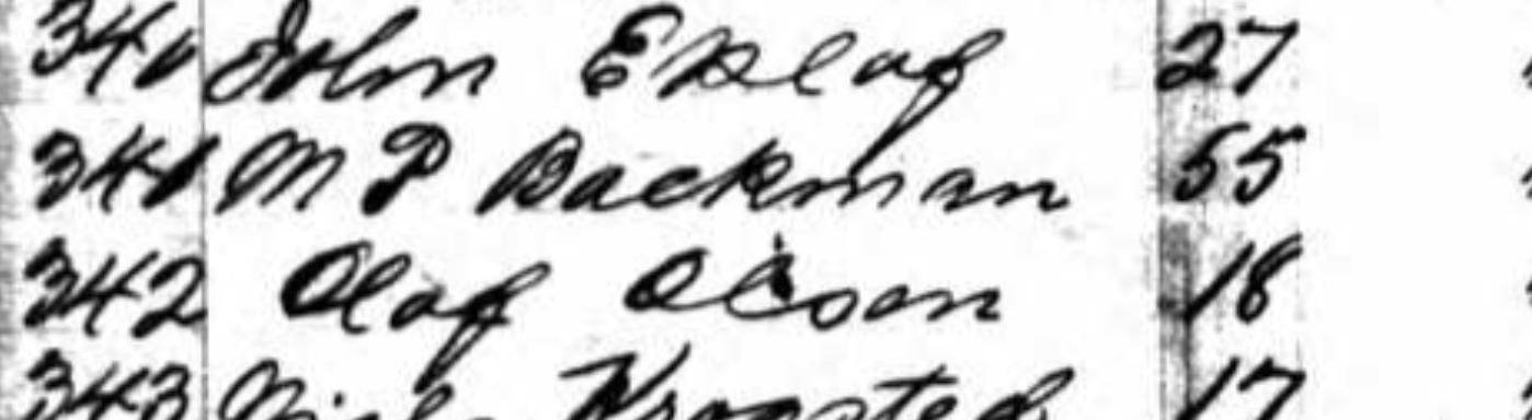 Olaf E. Olson - fødd i Noreg juli 1871 eller 1872 - utvandra 1890/1892 - sambuar i Minneapolis, MN frå 1896 - kven kan denne karen ha vore?