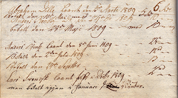 Even Stormoen Skrevet Januar 20, 2021 Del Skrevet Januar 20, 2021 Videre: Anders Bentz Do den 24de Do 1809 10 " " betalt den 28de Maji 1809 med 10 " " Anders Bentz Laant den 8de Juni 1809 25 " " Betalt den 2den Julii 1809 12rd Betalt den 24de Septbr 13 " " Lars Svendsk laant sidst i Decbr 1809 2rd men betalt igjen i Januari I [overstrøket] Vinter Mvh Roger Hardy reagerte på dette 1 Lenke til kommentar Del på andre sider More sharing options...