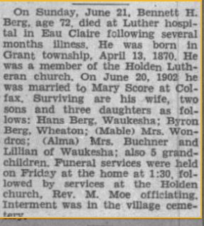 Hvor blir det av kona og sønnen? Datteren Ingeborg hadde det også vært interessant å finne igjen. Jeg har notert at hun døde i 1932 i Grant, Dunn, men finner ikke igjen kilden, så det kan være feil.