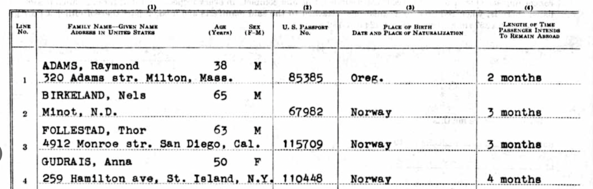 Nils Severin Olsen Birkeland f. 1883 på Birkeland i Austevoll/Sund sogn. Han drog til Amerika 16. april 1903. Det er mulig at han bosatte seg i nord eller sør Dakota?