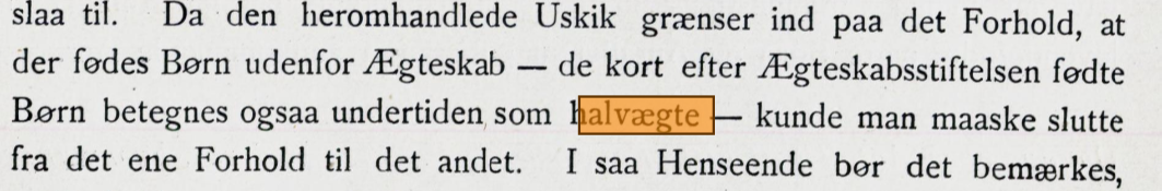 Ivar S. Ertesvåg Skrevet Mai 6 Del Skrevet Mai 6 30 minutter siden, Ivar Moe skrev: Sosialogen Eilert Sundt hadde meninger om halvuekte på 1800 tallet? Kan det være han presten har "kopiert"? Det er vel lite truleg at presten i 1709 hadde kjennskap til Eilert Sundt sitt arbeid frå 1850-talet, eller Kjær (1902) si drøfting av tilhøve på 1870-talet. Det kan vel også hende at meininga med ordet har endra seg frå Sogn 1709 til Kristiania 1850. Elles ser eg at det er fleire barn som er "hall u-ægte" i boka (s. 138, 21.s.e.tr 1708), og nokon som berre er "u-ægte" (t.d. s. 149, 31. okt 1710, s. 151 13.s.e.tr 1711) Det er ikkje lett å finne døme på bruk av ordet, eller forklaringar til det. Om vi skal legge til grunn at det har ei faktisk meinig, kan det vere at forklaringa ligg i Kristian Vs lov 5-2-32: "Egte-Børn ere de, som ere føde af Forældre der ere egte viede med hinanden, om end skiønt de kunde være føde, før end Forældrene vare komne sammen i Egteskab." Det vil altså gjere ein skilnad om foreldra har tenkt å gifte seg med kvarandre, eller ikkje. Lenke til kommentar Del på andre sider More sharing options...
