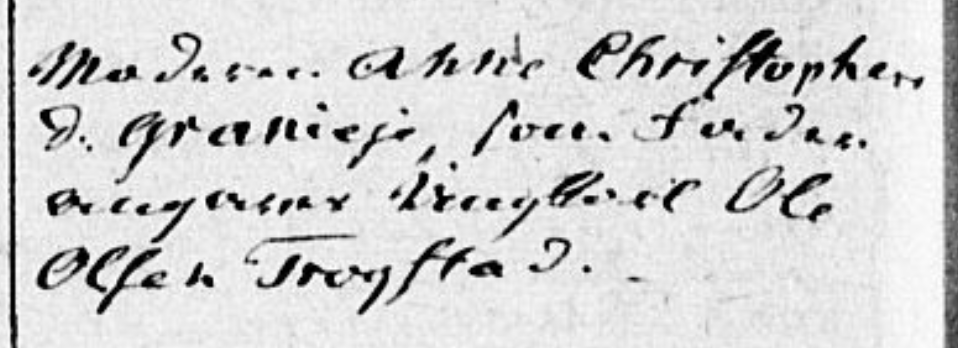 Tydning av Anne Marie Olsdatters dåp (1851, Nannestad)