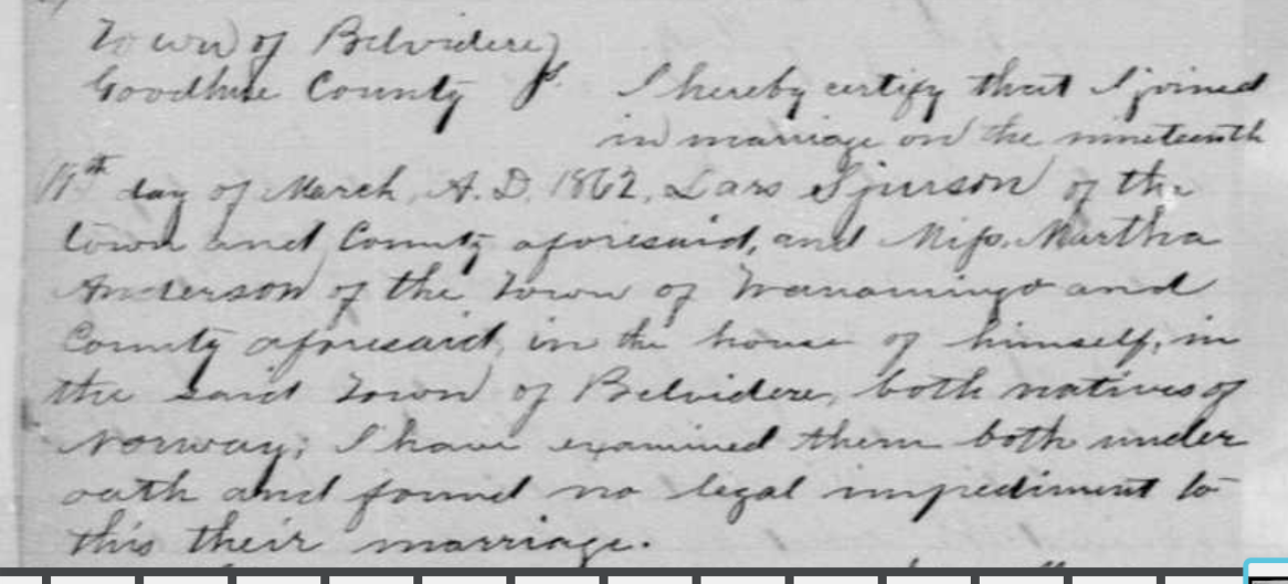 Detter kan være Lars Sjurson som ble gift med Martha Anderson i 1862, hun var fra Wanamingo