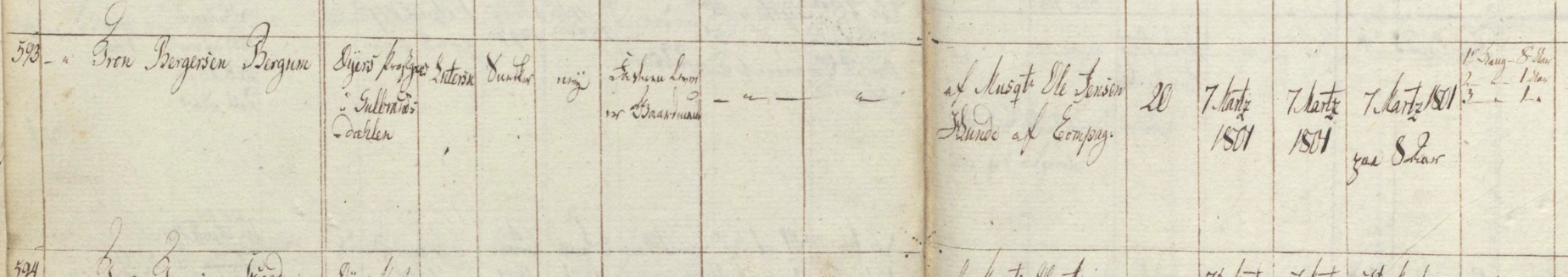 Tydning av Trond Bergersen Bergums militærrulle (1801)