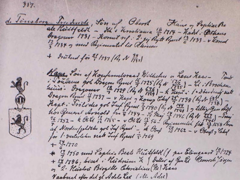 Hans de Tønsberg i J. C. W. Hirsch’ omtales på side 357 i bind 11–4 av Fortegnelse over danske og norske Officerer med Flere fra 1648–1814:
